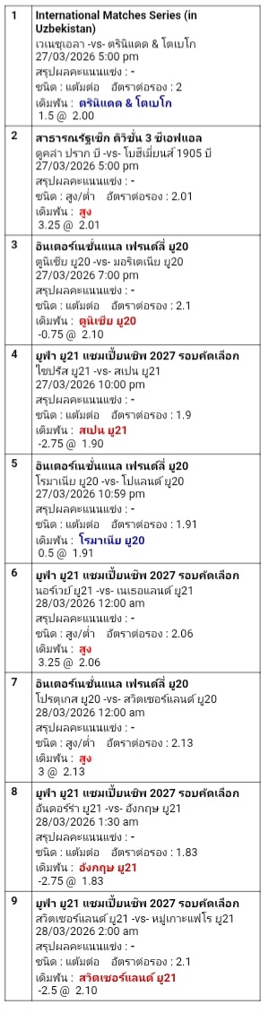 เปิดหัววันนี้ 9 คู่ สะดุดคู่ไหนตัดเอา