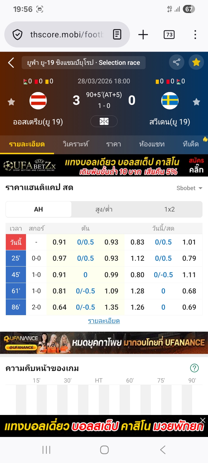 28 มี.ค. 2026,18:00 ออสเตรีย(ยู 19) VS สวีเดน(ยู 19) ต่อเจ้าบ้าน 0.25⭕ได้เต็ม3-0