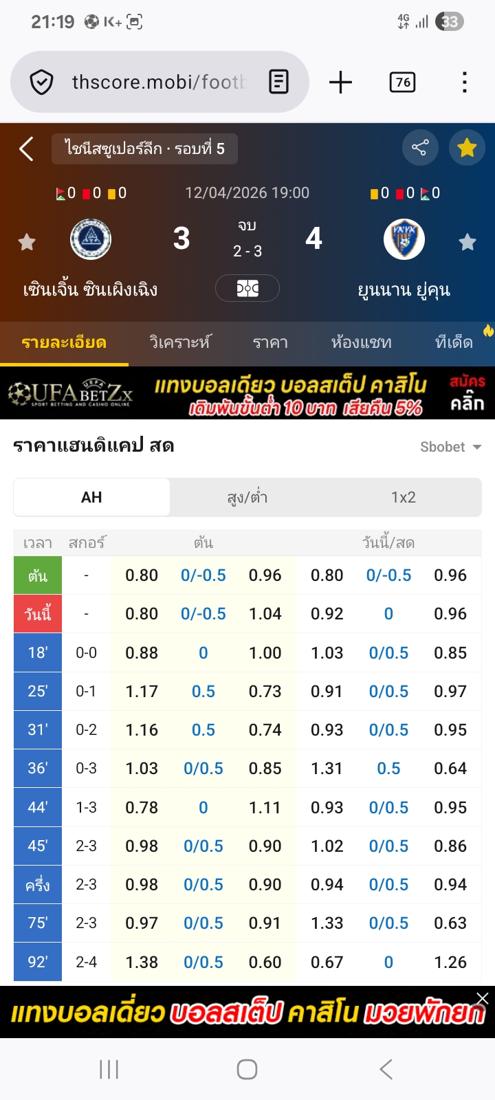 12 เม.ย. 2026,19:00 เซินเจิ้น ซินเผิงเฉิง VS ยูนนาน ยู่คุน เสมอทีมเยือน⭕ได้เต็ม3-4