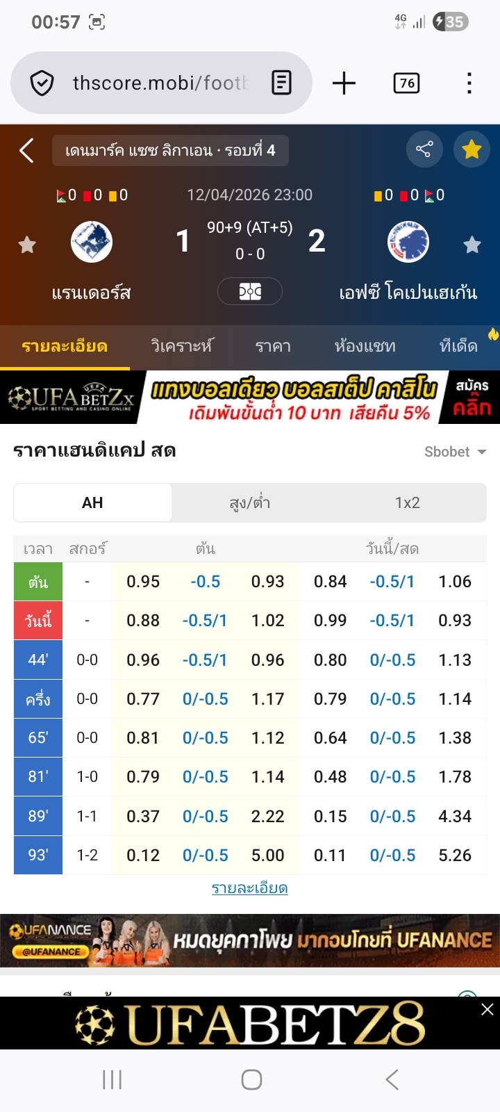 12 เม.ย. 2026,23:00 แรนเดอร์ส VS เอฟซี โคเปนเฮเก้น ต่อทีมเยือน 0.75⭕ได้ครึ่ง1-2