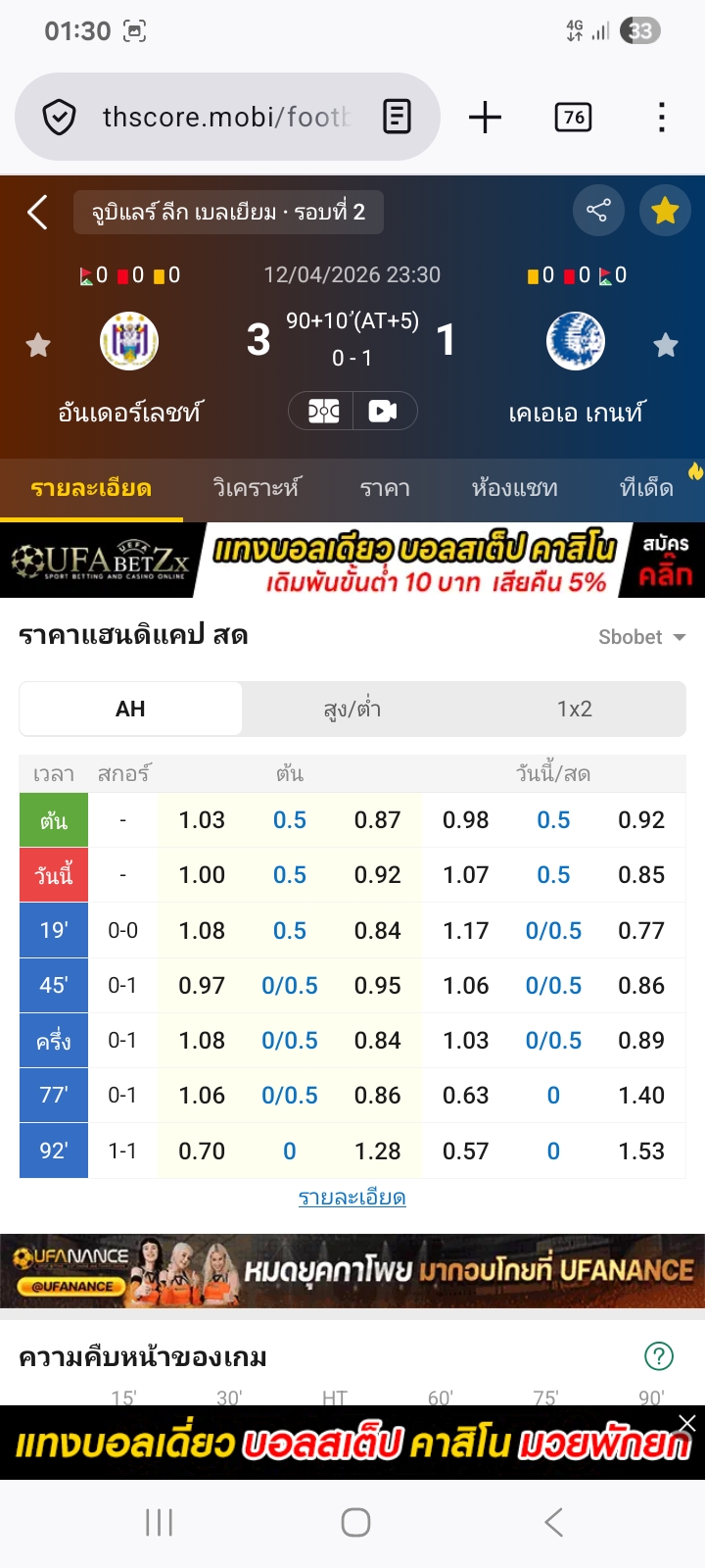 12 เม.ย. 2026,23:30 อันเดอร์เลชท์ VS เคเอเอ เกนท์ ต่อเจ้าบ้านครึ่งลูก⭕ได้เต็ม3-1