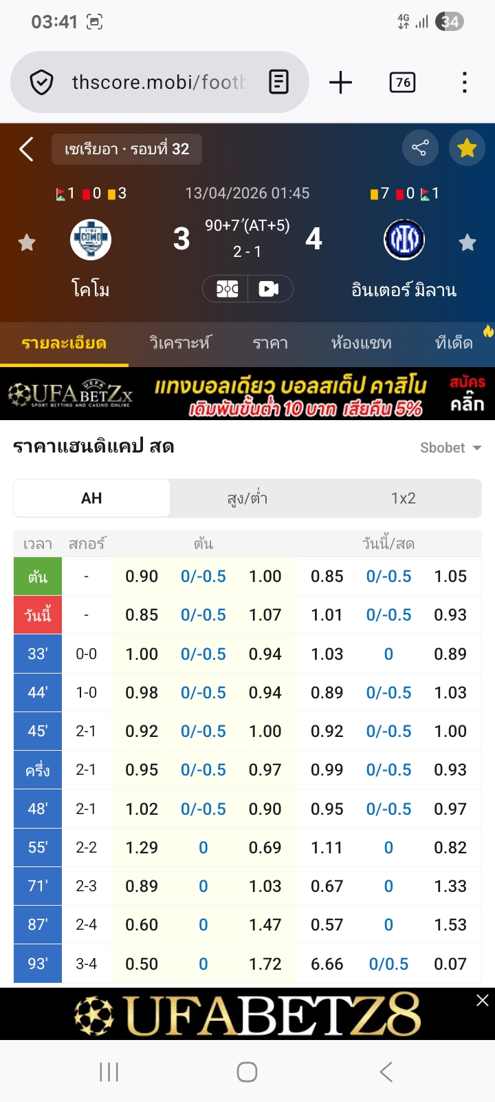 01.45 โคโม VS อินเตอร์ มิลาน ต่อทีมเยือน ปป.⭕ได้เต็ม3-4