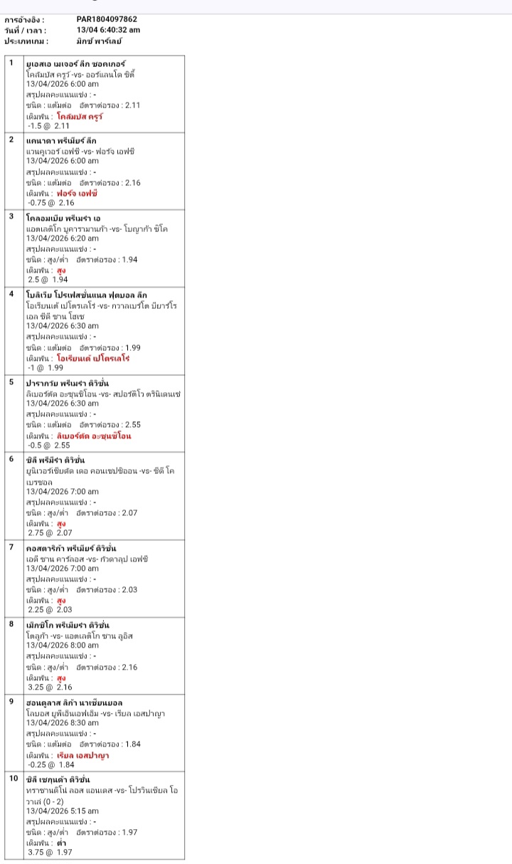 10 คู่ มั่วไปทีแทงให้เสียเงินเล่น มีสด 1 คู่ ใครชอบก็ตัดเอา