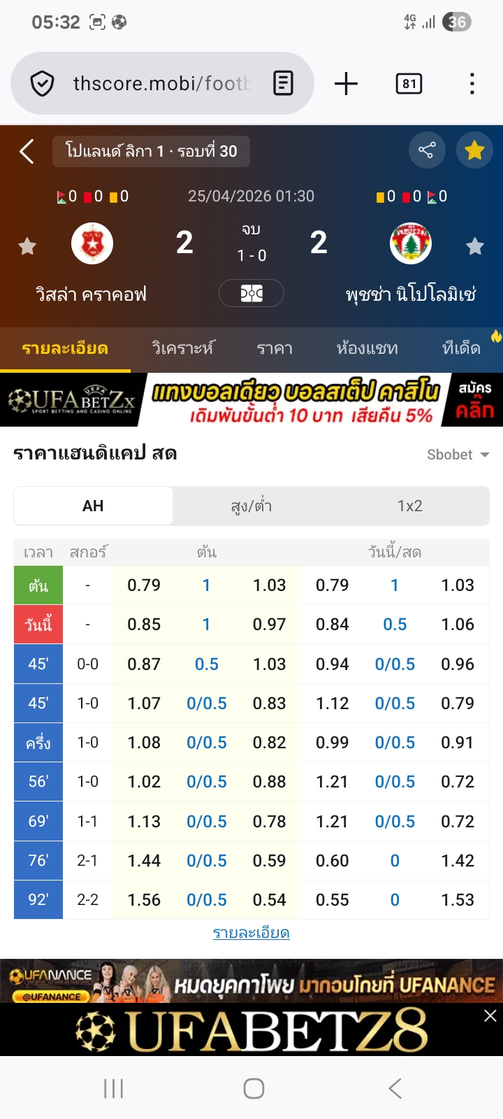 25 เม.ย. 2026,01:30 วิสล่า คราคอฟ VS พุชช่า นิโปโลมิเช่ สูงกว่า 2.5⭕แดก (ดูรูป)